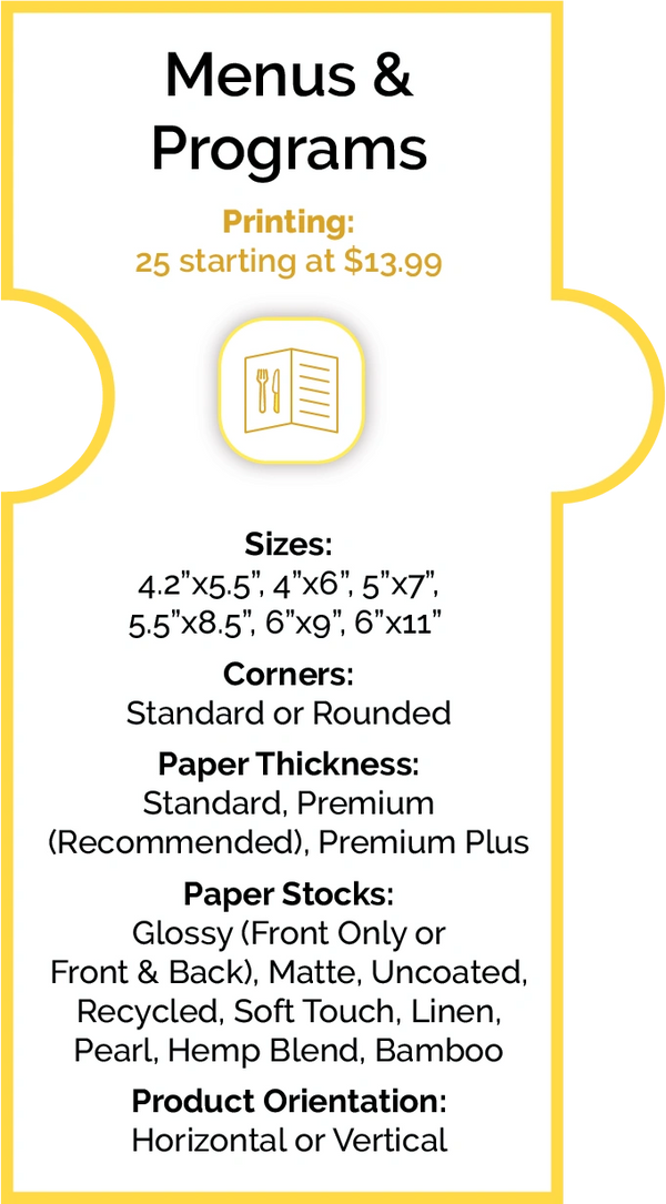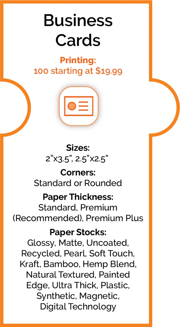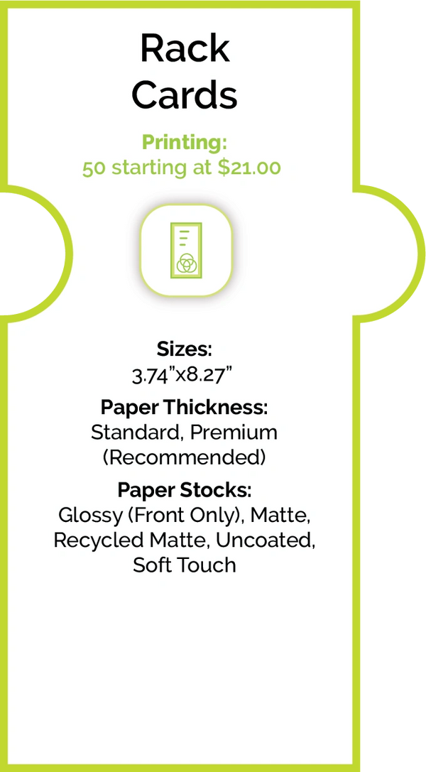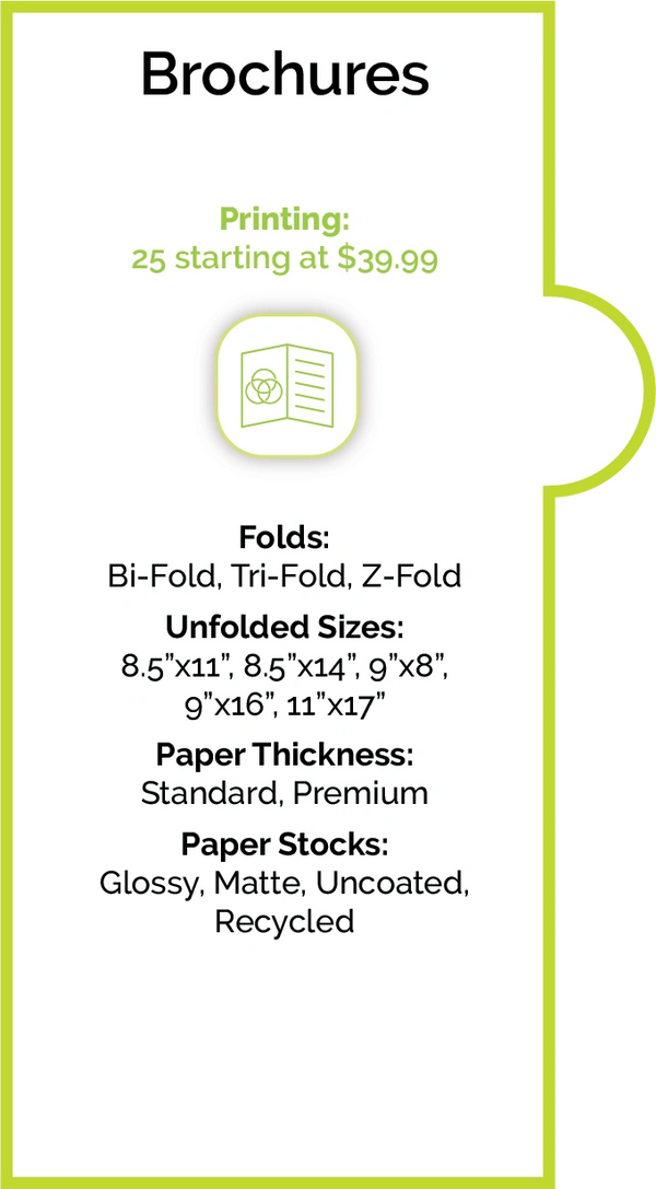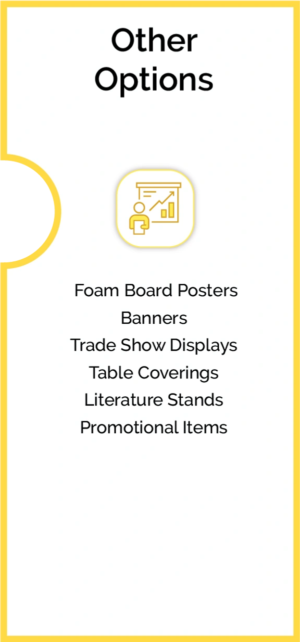 We provide a wide range of products to simplify your needs and help you establish a cohesive brand by working with a single service provider. If you’re looking for something specific that’s not listed, let us know. We can help you determine what would work best for you and create a personalized quote tailored to your needs.