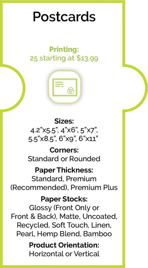 PRINT OFFER: 1000 Postcards (5"x7”, Premium, 1-Sided) $150 CAN+tax. Ships Free in CAN